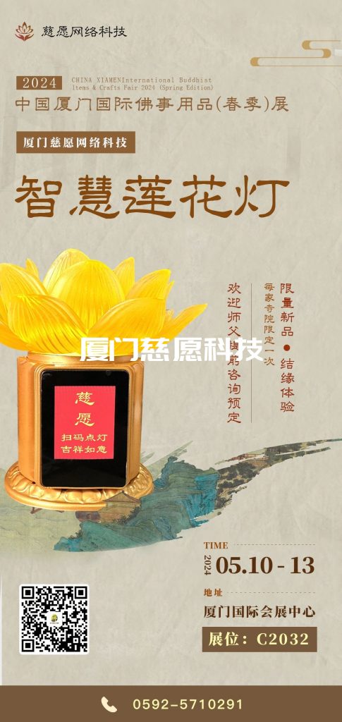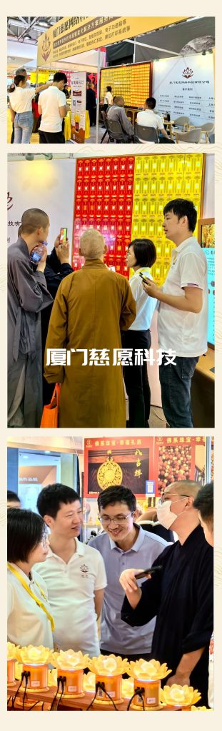 精耕多年,推陳出新,此次春季佛事展。慈愿帶來多款智能佛前蓮花燈以及祈福牌位等新品,在展位可掃碼體驗(yàn)。