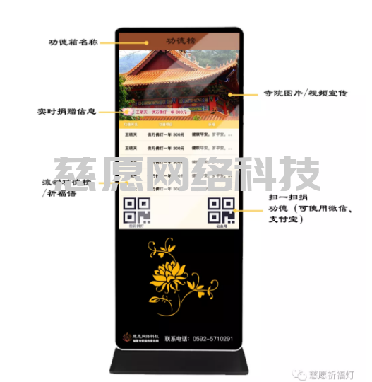 寺院管理軟件中的供奉管理里的每筆善款都會(huì)通過寺廟、道觀現(xiàn)場(chǎng)廣告機(jī)實(shí)時(shí)滾動(dòng)。每筆善款清晰可見